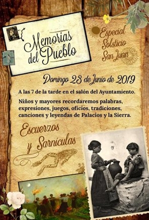 Una actividad en la que la idea es aportar palabras, refranes, anécdotas, canciones o fotografías para recordar cómo era antes Palacios de la Sierra en esta época del año. Lo cierto es que hoy en día las nuevas tecnologías y las redes sociales facilitan mucho este tipo de búsquedas por la facilidad para encontrar y escanear documentos y también por lo sencillo que es enviarlos y compartirlos en redes sociales. Con esta actividad se pretende retroceder en el pasado para buscar todo aquello que definía la vida y a las gentes del pueblo en otras épocas. Se trata en definitiva de recordar tradiciones, canciones, palabras o refranes de tal modo que no queden en el olvido. Es un actividad encaminada a conocer mejor el pueblo y su pasado para valorar la vida de las gentes de otras épocas.